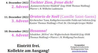 | 22:00 Uhr | Tann – Stadtkirche Christmette mit Kirchenchor | Pfarrer i. R. Wolfgang Paechnatz |