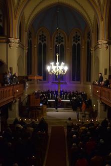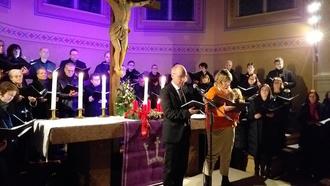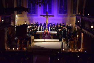 Zu Friedrich Waltz‘ „Seht, die gute Zeit ist nah“ verteilten sich die Sängerinnen und Sänger im Kirchenraum und zogen singend zum Altar. Mit seinen Prophezeiungen über den Messias malt Jesaja hoffnungsvolle Bilder vom anbrechenden Gottesreich. Davon kündete das Lied „Kündet allen in der Not“, das in einer frischen Bearbeitung für Chor und Orgel erklang.