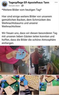 Am 3. Dezember fand die Weihnachtsfeier in der Tagespflege im Elf-Apostelhaus statt.