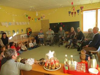 Ganz regelmäßig bekommt der Kindergarten Besuch. Da waren schon der Bürgermeister und auch die Polizei. Die Feuerwehr und auch der ein oder andere Arzt. Am 5. Dezember waren ganz besondere Menschen zu Gast. Bewohnerinnen und Bewohner des Seniorenzentrums Meo Domo besuchten die Kinder im Kindergarten Tann. Sie wurden mit einem Lied, einem Lichtertanz und großer Aufregung empfangen. Außerdem hatten die Kinder für die alten Menschen gebastelt und gebacken. Doch auch die Bewohnerinnen und Bewohner, die von Frau Henkel begleitet wurden, hatten etwas mitgebracht. So trugen sie Gedichte vor und hatten eine große Tüte mit Plätzchen und Süßem. Dann machten Sie sich wieder auf den Weg und für alle war es eine ganz besondere Begegnung.