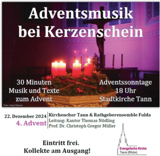 | Adventsmusik bei Kerzenschein mit dem Kirchenchor Tann & Rathgeberensemble Fulda, Leitung: Kantor Thomas Nüdling |