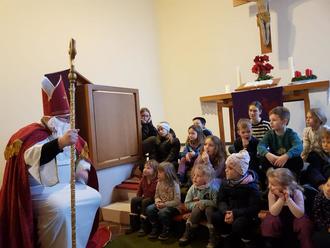 Das war eine Überraschung, als am 6. Dezember der Nikolaus durch Theobaldshof kam und in der Kirche Halt machte. Die Kinder waren gerade bei der Probe für das Krippenspiel am Heiligen Abend.