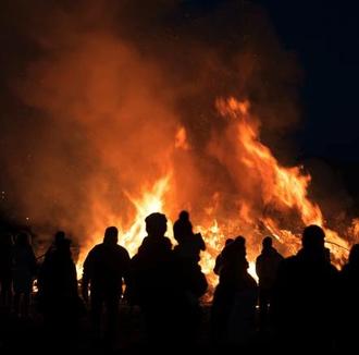 Das Hutzelfeuer wird bei Anbruch der Dunkelheit gegen 18 Uhr angesteckt.