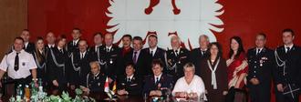 Zum 10-jährigen Bestehen der Partnerschaft der Feuerwehrwehren der Stadt PöÃneck und der polnischen Stadt Bytom Ordranski erhielt Michael Henkel (2.v.r.) von den polnischen Partnern eine besondere Ehrung: die Silberne Medaille âFür Verdienste um die Feuerwehrâ. Neben Vertretern der Stadt Bytom und deren Feuerwehr sowie Berufsfeuerwehr der Kreisstadt Nowa Sol waren politische Vertreter der Wojewotschaft und der Hauptstadt Warschau dabei.
