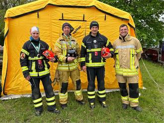 Die Feuerwehr Hirschberg war mit drei Startern dabei - Kay Hain, Karsten Neupert und Jana Reinhard. Unterstützt wurden sie von Martin Kunze, Wehrleiter aus Kranichfeld und bildeten zwei Teams.
