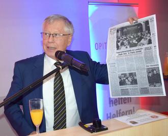 Die Shedhalle in Pößneck war an diesem Abend im Januar ganz besonders dekoriert: verschiedene große Feuerwehr-Banner, eine Feuerwehr-Ausstellung, Feuerwehr-Tischschmuck an weiß gedeckten runden Tischen - und das Beste, die Wichtigsten an diesem Tag: 140 schick uniformierte Feuerwehrleute sowie Ehrengäste. Sie alle waren gekommen, um das 30-jährige Bestehen des ersten Groß-Kreisfeuerwehrverband Thüringens zu feiern: des Kreisfeuerwehrverbandes des Saale-Orla-Kreis e.V.