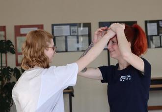Neben dem Kennenlernen und der Besichtigung der Ausstellung „Frauen in der Feuerwehr - Feuerwehrfrauen in Thüringen“ stand ein Selbstverteidigungskurs auf dem Programm.