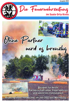 Besonders stolz sind wir auf unsere eigene Zeitung, die Feuerwehrzeitung für den Saale-Orla-Kreis. Sie erscheint seit 1998 und wird jeweils an alle Haushalte im Kreisgebiet geliefert.