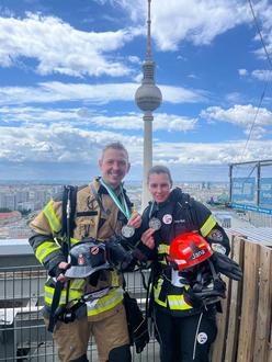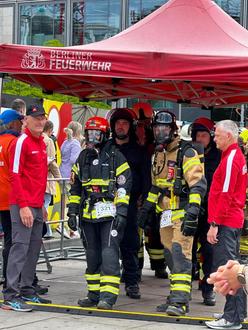 Geschafft: 39 Etagen, 770 Stufen in kompletter Uniform und Atemschutzausrüstung