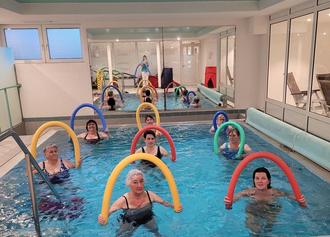 Die Landfrauen haben Spaß bei der Bewegung im Wasser.