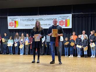 Beim Gauturntag wurden viele Meister von 2022 geehrt, darunter auch Leslie Arbeiter und Lorenz Braun, sowie 9 weitere Hessenmeister der LfV.