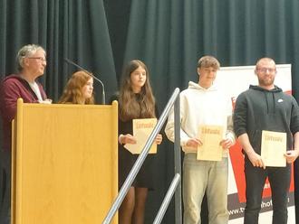 Goldene Ehrennadel für Lorenz Braun, Jannik Schmidt und Leslie Arbeiter.