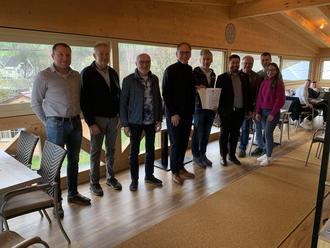 Landrat Michael Köberle hat dem Villmarer Bürgermeister Matthias Rubröder einen Förderbescheid aus der Säule B des Zukunftsfonds übergeben. Mit 75.000 Euro fördert der Landkreis Limburg-Weilburg die Errichtung eines Hallenbades am Carolinger Hüttendorf in Weyer.