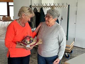 Karin Schupp (rechts) bedankt sich bei Gedächtnistrainerin E. Schmid (links)