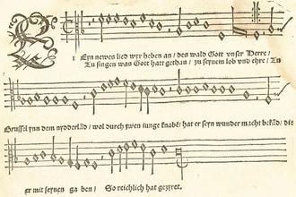 Das erste bekannte Lied aus der Feder Martin Luthers steht nicht im Gesangbuch. 1523 schrieb Luther die Zeilen des Liedes "Ein neues Lied wir heben an" - er schrieb diese Zeilen als er erfahren hatte, dass in Brüssel zwei junge Augustinermönche, die sich zum Evangelium bekannten, gefangen und als Ketzer verbrannt worden waren. Das Lied Luthers wurde aber nicht zu einem blutrünstigen Rachegesang......