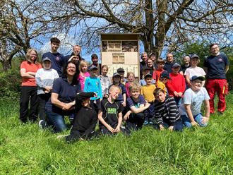 Nach getaner Arbeit konnten die Mädels und Jungs mächtig stolz auf sich sein. Zum Richtfest des Bienenhotels gab es natürlich eine Stärkung in Form von Bratwurst im Brötchen. Jetzt hoffen alle Baumeister auf einen baldigen Bezug des Hotels durch allerlei nützliche Insektenarten.