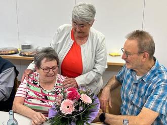 Veronika Hartmann erhält als Dank einen Strauß von Karin Schupp