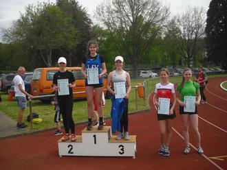 Mit 966 P. wurde sie 7. im Drei- und mit 1 268 P. 4. im Vierkampf. Bei der W 12 waren mit Xenia Horst und Alia Steinmetz zwei LfV-Mädchen am Start. Xenia lief die 75 m in 12,21 sek, sprang 3,41 m weit, schaffte im Ballwurf 14,00 m und überquerte im Hochsprung 1,18 m. Im Dreikampf kam sie mit 909 P. auf den 8. und im Vierkampf mit 1 211 P. auf den 4. Platz. Alia belegte im Dreikampf mit 853 P. Platz 12 und im Vierkampf mit 1 100 P. Platz 6 mit folgenden Einzelleistungen: 75 m in 13,19 sek, Weitsprung 2,98 m, Ballwurf 20,00 m und Hochsprung 1,10 m. In der Mannschaftswertung W 12/W 13 erreichten diese drei im Dreikampf mit 2 728 P. Platz 3 und im Vierkampf mit 3 579 P. Platz 2.