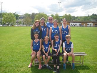 Das erfolgreiche LfV-Team h. v. l. Staecy Fleig, Leslie Arbeiter, Walter Haas, Alia Steinmetz, Junia Schröder, v. v. l. Emilia Dvortsova, Laura Fiedler, Xenia Horst und Armin Conrad.