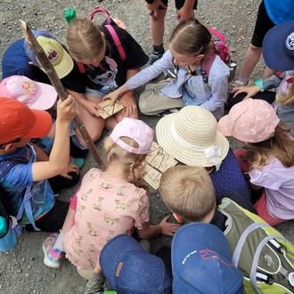 Die Landkids setzten die Schatzkarte in Rekordzeit zusammen und freuten sich dann über den gehobenen Schatz mit einer Überraschung für jedes Kind.