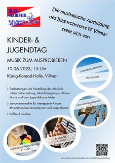 Am Samstag, dem 10. Juni 2023 um 15.00 Uhr, lädt das Blasorchester der FF Villmar alle interessierten Kinder und Jugendliche zu einem Kinder- und Jugendtag in die König-Konrad-Halle ein. Natürlich sind auch interessierte Eltern und Erwachsene gerne gesehen.