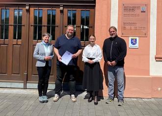 Von links: Bettina Tayefeh-Mahmoudi (Direktorin des Amtsgerichts Weilburg), Andreas Scholz, Alicia Bokler (Bürgermeisterin des Marktfleckens Villmar), Mario Rudolf (Ortsgerichtsvorsteher Ortsgericht Seelbach-Falkenbach)