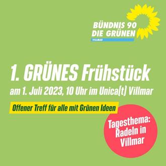 Am 1. Juli lädt der Ortsverband zu einem Grünen Frühstück ein. Eine prima Gelegenheit sich schon mal auszutauschen, was für tolle Ziele es in unserer Umgebung gibt und wie man sie am besten per Rad erreichen kann. Oder auch um darüber zu diskutieren, wie die Beschaffenheit der vorhandenen Radwege ist und wo Radverbindungen eventuell fehlen. Jeder ist herzlich willkommen, sich und seine grünen Ideen einzubringen. Kommen Sie einfach vorbei: