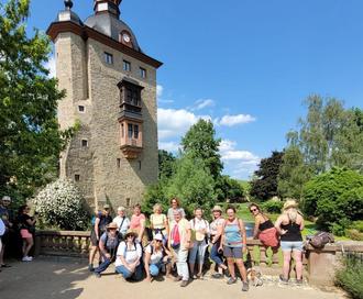 Bei einer Rast im wunderschönen Schloss Vollrads traf sich ein Teil der Wandergruppe wieder - perfekter Zeitpunkt und perfekte Kulisse für ein Gruppenfoto.