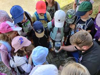 Dem Wasser auf der Spur waren die Villmarer Landkids bei ihrem jüngsten Ausflug. Nach einer kleinen Wanderung vom Friedhof aus durften sie nämlich hinter die Kulissen der Villmarer Wassergewinnung schauen und einen exklusiven Blick in den Hochbehälter werfen. Dort angekommen erklärten die fürs Wasser zuständigen Gemeindemitarbeiter Thorsten Nöller, Sebastian Reinhard und Johannes Tiefenbach den Kindern sehr eindrücklich, wie viele tausend Badewannen voll Wasser jeden Tag aus dem Hochbehälter in die Villmarer Häuser fließen, für was wir so viel Wasser eigentlich brauchen und welchen Weg ein Tropfen Wasser zurücklegt, bis er zuhause aus der Leitung fließt. Mit einem selbst gebauten Filter in einer Plastikflasche simulierten die Männer für die Kinder, wie das Regenwasser durchs Erdreich und Gestein sickert, dabei gereinigt und gleichzeitig mit wertvollen Mineralien angereichert wird. Beim Blick durch die Fenster aufs Wasser im Hochbehälter kamen die Kinder ins Staunen – genau wie bei einer praktischen Vorführung der sogenannten Kapillarwirkung, die Thorsten Nöller mithilfe einer Papier-Seerose in einer Schüssel Wasser erklärte. Und natürlich durfte auch eine Wasserverkostung mit dem frischen Wasser aus dem Hochbehälter nicht fehlen. Nach einer kleinen Stärkung und der kurzen Wanderung zurück Richtung Friedhof freuten sich die Kinder zum Abschluss des spannenden Ausflugs noch über Zeitschriften zum Thema Wasser, die die Landkids-Betreuerinnen Kathrin Rosbach, Denise Kaulakis und Mandy Markus für sie organisiert hatten.