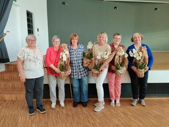 Sportlich wurde es im Gymnastikkurs, bei der Aqua-Gymnastik, einer kleinen Wanderung und beim Yogakurs. Der gemeinschaftlich mit dem Naturschutzverein organisierte Pflanzmarkt war ein so großer Erfolg, dass er in diesem Jahr schon wiederholt wurde. Ihre Kreativität konnten die Landfrauen bei der Gestaltung von Vintage-Schildern und bei einem Adventsfloristik-Kurs ausleben und gleich drei Tagesfahrten führten die Villmarer Frauen nach Linz, zur Flötenwanderung in den Rheingau und auf den Weihnachtsmarkt nach Trier. „Insgesamt haben wir 24 Programmpunkte mit und für euch durchgeführt und daran haben insgesamt über 750 Frauen teilgenommen“, fasste Geßner zusammen. Die Villmarer Landfrauen durften im vergangenen Jahr außerdem rund 40 neue Frauen in ihren Reihen begrüßen, der Verein hat damit nun über 380 Mitglieder. Beisitzerin Denise Kaulakis berichtete dann von den Aktivitäten der Landkids und Landteens im vergangenen Jahr. Die Kindergruppe der Landfrauen, die mittlerweile auf über 70 Mädchen und Jungs angewachsen ist, machte unter anderem spannende Exkursionen mit der Försterin Nadine Ströbele in den Wald oder zur Polizei nach Limburg und übte sich im Kochen von leckerem Fingerfood und im Backen von Weihnachtsplätzchen. Kassiererin Silvia Werner berichtete von den Einnahmen, den Ausgaben und der soliden Finanzlage des Vereins. Nach dem Bericht der Kassenprüferinnen wurde der Vorstand einstimmig entlastet. Für ihre 25-jährige Mitgliedschaft im Verein ehrte die Vorsitzende Gabi Fluck sodann Irmgard Claßen, Petra Laux, Claudia Biehl, Margarethe Schmidt, Elvira Sachs und Johanna Koschnitzke.