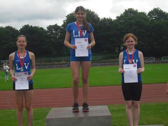 Der Fünfkampf W 14-15 wurde von den LfV dominiert, v. l. Junia Schröder, Leslie Arbeiter und Staecy Fleig.