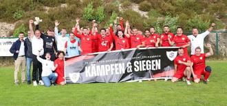 Das Foto zeigt die jubelnden FSG Akteure am 25. Mai 2025 nach dem 2:1 Sieg bei der SG Weinbachtal in Elkerhausen, wodurch für die FSG der direkte B-Liga Klassenerhalt am letzten Spieltag aus eigener Kraft erreicht wurde.