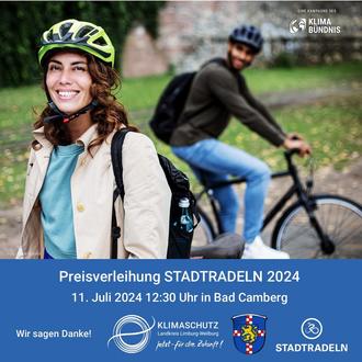 Wer die meisten Kilometer erradelt hat und welche Preise die Gewinner erhalten, wird am Donnerstag, 11. Juli 2024 um 12:30 Uhr auf dem Marktplatz in Bad Camberg bei der feierlichen Preisverleihung mit Landrat Michael Köberle und Bürgermeister Daniel Rühl bekanntgegeben.
