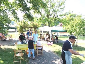 Unter schattenspendenden Pavillons, sowie der mit Rosen umrankten Pergola, ließen sich alle ihre mitgebrachten Köstlichkeiten munden.