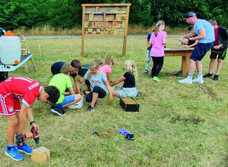 Zum Ferienbeginn können nun die Insekten in ihr Hotel „auf der Struth“ einziehen. Dank der fleißigen Klasse 4a von der Johann-Christian-Senckenbergschule ist es noch rechtzeitig zum Schuljahresende fertig geworden. Tatkräftige Unterstützung bekamen die 25 motivierten Schüler*innen von ihrem Lehrer Herrn Wolf und Uwe Haun vom Naturschutzverein Villmar. Die zahlreichen Insekten werden es dankbar anfliegen!