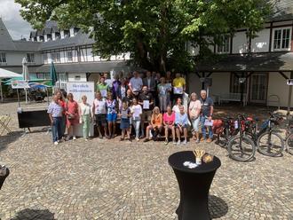 Zwölf Kommunen des Landkreises Limburg-Weilburg waren diesmal beim STADTRADELN mit dabei: Bad Camberg, Beselich, Brechen, Elz, Hünfelden, Limburg, Runkel, Selters, Villmar, Waldbrunn, Weilburg und Weilmünster. Es wurden Preise in den Kategorien „Radelaktivstes Team", „Team mit den radelaktivsten Teilnehmenden", „Größtes Team" und „Radelnde mit den meisten Kilometern" vergeben. Das radelaktivste Team kam aus Eschhofen mit 15.140 Kilometern, das zugleich auch mit 75 Radelnden die größte Gruppe stellte. Die Truppe mit den radelaktivsten Teilnehmenden war das Team 22 mit 1.631 Kilometern pro Person. Radelnde mit den meisten Kilometern waren Harald Marx vom Team „Schneesturm Bad Camberg“ mit 2.112 Kilometern, Jim Luca Tögel von der Taunusschule Bad Camberg mit 2.027 Kilometern und Mario Drozdowski von der Marienschule Limburg mit 1.831 Kilometern. Die Preisträgerinnen und Preisträger freuten sich über Flicksets, Reflektorbänder, Handyhalterungen, Taschen, Helmtüten und Gutscheine vom Weltladen. Außerdem erhielten die besten Schulen jeweils ein Balkonkraftwerk sowie einen Workshop zum Thema Solarstrom von der Bürger Energie Hohenstein.