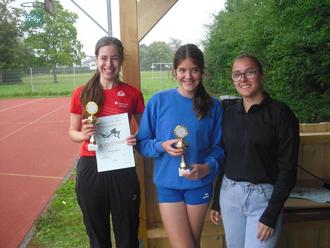 Für ihre guten Leistungen gab es von der Wettkampfleiterin Chantal Jung Pokale für Leslie Arbeiter und Johanna Monschauer v. r.