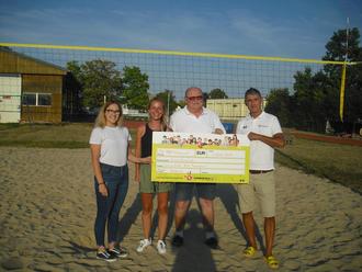 Strahlender Sonnenschein, zahlreiche Sonnenliegen und –schirme und kleine Pools sorgten wieder rund um das Beachvolleyballfeld auf der Sportanlage der Leichtathletikfreunde Villmar für ein wenig Strand-Feeling beim 4. Benefiz Beachvolleyball-Turnier von Jugendpflege und LfV. Im Vordergrund dieser Veranstaltung standen wieder wie in den Jahren zuvor der Spaß und der gute Zweck. Durch die tollen Spenden, durch die Startgeldeinnahmen der sieben Teams und dem ordentlichen Verzehr aller Anwesenden, kam die phantastische Spendensumme von 2 000,00 € zusammen, die von der Jugendpflegerin Conny Döring, sowie von den LfV-Vorstandsmitgliedern Walter Haas und Chantal Jung an Massimo von der Summerfield Kids Foundation übergeben wurden, der extra dafür nach Villmar kam, diese Idee ganz hervorragend fand und sich im Namen der Stiftung herzlich bedankte.