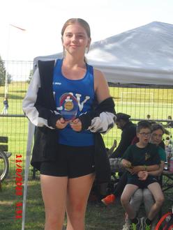 überlegener Sieger. Platz 2 gab es bei den Schülern 8-9 für Julien Steinmetz mit 18,78 P., 4. wurde hier Niklas Grieswald mit 14,69 P., 5. Luke Schmidt mit 14,48 P. und 6. Matheo Göbel mit 12,00 P. Gold und Silber gab es im Dreikampf W 10-11 durch Emilia Dvortsova mit 19,71 P. und Laura Fiedler mit 19,47 P. Laura wurde überlegene Siegerin im 600 m Geländelauf M/W 8-10 in 2:32 min. Niklas Grieswald wurde 3. in 2:44 min und Sophie Grieswald 11. in 3:28 min. Sophie holte sich den Goldpokal im Dreikampf W 8-9 mit 15,59 P., Bronze gab es für Olivia Horst mit 13,47 P. Bei den Frauen 20-39: siegte im Schleuderball: Chantal Jung mit 33,94 m und wurde 2. im Kombiwettkampf mit 9,82 m. Vier Siege gab es für die beiden ältesten Teilnehmer. In der Klasse M 60 gewann Martin Frömel den Dreikampf mit 24,97 P. und den Schleuderball mit 37,46 m, in der M 70 siegte Walter Haas im Schleuderball mit 25,03 m und im Kombiwettkampf mit 11,41 m.