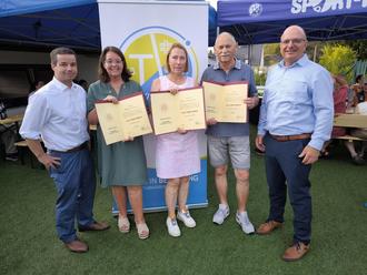 Verleihung des Gauehrenbriefs v.l.n.r.: Andreas Hofmeister, Adelheid Noack, Patricia (Patty) Schneider, Hans-Josef Falk, Michael Rosam