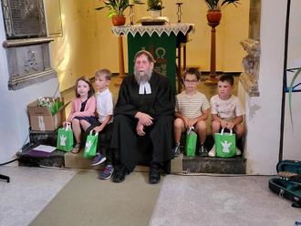 Nach der Predigt überreichte Gemeindepfarrer Ulrich Finger dann den angehenden Schülerinnen und Schülern noch ein kleines Geschenk.