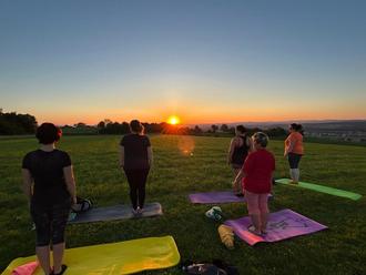 Der Wettergott hatte es diesen Sommer nicht gut gemeint: Weil es viel regnete, mussten einige Termine des diesjährigen Yoga-Kurses auf dem Galgenberg der Villmarer Landfrauen verschoben werden. Drinnen Yoga machen wollten die Villmarer Yogis nämlich auf keinen Fall – zu schön ist die abendliche Stimmung und der Ausblick vom Galgenberg auf Villmar. Und so konnte trotz widrigem Wetter der Kurs nun erfolgreich beendet werden - mit einem sensationellen Sonnenuntergang. Fast 20 Frauen konnten in diesem Jahr am Yoga-Kurs teilnehmen und trainierten damit Beweglichkeit, Kraft, Atmung und den Blick nach Innen auf sich selbst. Auch im nächsten Jahr soll es im Sommer wieder einen Yoga-Kurs geben – und dann stimmt sicher auch wieder das Wetter.
