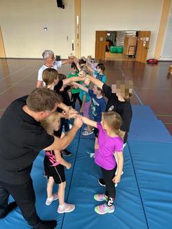 Mit Spaß stark werden – das war das Motto des fünfstündigen Selbstverteidigungskurses, bei dem elf Landteens ab 8 Jahren spielerisch lernten, wie man sich behaupten und verteidigen kann. Auf dem Programm standen Karate-Tritte, sanftes Fallen auf die Matte und einfache Tricks, um sich aus Umklammerungen zu befreien. Aber auch Teamgeist kam nicht zu kurz: In kleinen Spielen und Gruppenaufgaben konnten die Kinder unter der Anleitung von Karatetrainer Rainer Wieczorek zeigen, wie man gemeinsam knifflige Situationen meistert. Am Ende gingen alle mit mehr Mut, Selbstvertrauen – und jeder Menge Spaß – nach Hause.