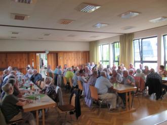 Der Seniorennachmittag für alle Sportlerinnen und Sportler „Ü 65“ ist ein fester und beliebter Bestandteil im Kalender des Turn- und Spielvereins. Leider musste die Veranstaltung in den vergangenen beiden Jahren aufgrund der Corona-Pandemie zweimal abgesagt werden, umso erfreulicher war man in Aumenauer Sportlerkreisen, dass einer Durchführung in der zweiten Jahreshälfte diesmal nichts im Wege stand. Neu war allerdings der Veranstaltungsort, denn das vereinseigene Sportheim am Eichelberg war aufgrund des immensen Interesses schlicht und einfach zu klein, so dass die Vereinsfamilie ins evangelische Gemeindehaus „umziehen“ musste. Zudem wurde auch gleich mit einem zünftigen Mittagessen gestartet, was bei allen Beteiligten großen Anklang fand. Im Anschluss nutzte Vorsitzender Michael Saltenberger den würdigen Rahmen der Veranstaltung, um zahlreiche verdiente Sportlerinnen und Sportler für ihre langjährige Treue zum TuS auszuzeichnen. Für 40-jährige Mitgliedschaft erhielt Waltraud Schmidt die Vereins-Ehrenmedaille in Gold. Für 50-jährige Mitgliedschaft wurden Christina Hahn, Sylvia Motz, Ute Wagner, Klaus Höhn, Hans-Albert Jesse, Klaus-Peter Köth, Roger Kramer, Jürgen Lang, Volker Becker, Gerd Dombach, Hans-Jürgen Fink, Karl-Gerd Gebauer, Helmut May, Hans-Joachim Mill, Detlef Meinhold, Franz Müller, Wolfgang Schlemper, Wolfgang Schmidt und Harald Zanner zu Ehrenmitgliedern ernannt. Für 60-jährige Vereinstreue erhielten Anni Kramer, Renate Lämmer, Inge Lang, Christa Belke, Manfred Heck, Horst Dombach, Jürgen Müller, Dieter Sahler, Lorenz Wagner und Josef Wagner die Ehrenplakette – die höchste Auszeichnung des TuS. Bei Kaffee, selbstgebackenen Kuchen und interessanten Gesprächen verging die Zeit einmal mehr im Fluge und ein rundum harmonischer Nachmittag klang so langsam aus.