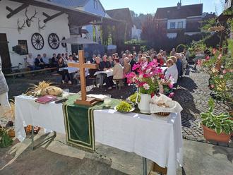 Erntedankfest feiern wir in Weyer in diesem Jahr bereits am Sonntag, dem 28. September. Voraussichtlich werden wir zum Gottesdienst um 10.30 Uhr wieder in der „Olemill“ in der Klosterstraße zusammenkommen. Im geräumigen Hof der Familie Raab-von der Heyde werden wir Gottesdienst feiern. Und anschließend laden wir – wie in den vergangenen Jahren auch – zum gemeinsamen Mittagessen ein. Im Anschluss gibt es auch noch Kaffee und Kuchen. Wie im Gemeindebrief bereits angekündigt, bitten wir auch für Spenden für neue Bäume auf dem Weyrer Friedhof. Bei ganz schlechtem Wetter findet das Erntedankfest in der Kirche statt. Das Foto stammt aus dem Jahr 2023.
