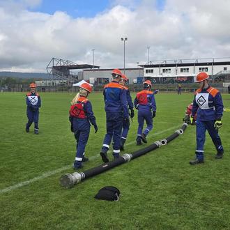 Feuerwehr ist Teamarbeit. Das haben die Mädels und Jungs mit einer starken Leistung gezeigt! Mit 20 von maximal 24 erreichbaren Punkten, haben sie die fünf gestellten Aufgaben, bei denen auch das Auftreten der Mannschaft separat bewertet wurde, gemeistert. Die zu erfüllenden Aufgaben sind ein 1000 Meter langer Staffellauf in maximal 2:50 Minuten, Kugelstoßen bei dem die Staffel eine Weite von mindestens 36 Metern erreichen muss, eine 75 Meter lange Schlauchleitung in maximal 70 Sekunden aufbauen, einen Löschangriff nach der Dienstvorschrift vorzunehmen und das Wissen der Gruppe durch beantworten von Fragen zu den Themen Organisation, Ausrüstung, Geräte, Löschmittel, Löschverfahren der Feuerwehr, Unfallverhütung sowie Gesellschafts- und Jugendpolitik nachzuweisen.