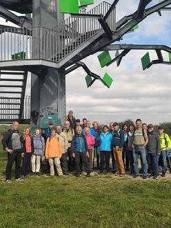 Aus der Reihe „Die Heimat entdecken, Wandern für ALLE“ ging es diesmal mit 27 Teilnehmern nach Hochheim. Vom Weingut „Weilbächer“ aus, ging es durch die Weinreben zum Königinnen Victoria Denkmal, das aus Anlass eines Besuch 1845 errichtet wurde. Von dort aus weiter fürhrte uns die Tour zum Geodenkmal „Dem sprechenden Baum“,der wenn man hochgeht seine Geschichte erzählt, am Wickerbach entlang, um dann nach 5 Std. Wanderzeit und 18 km unter den Füßen, den Abschluss im Weingut zu machen. Auf diesem Wege sage ich DANKE an alle, die an den bisherigen Touren mit gelaufen sind und freue mich im nächsten Jahr vielleicht auf neue Teilnehmer.