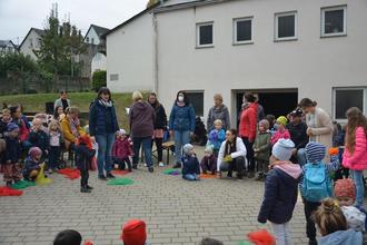 Villmar.- Ein echter Herbsttag, morgens neblig und gegen Mittag etwas Sonne und wie im Herbst normal, auch ein kurzer Nieselregen, aber das tat der Stimmung beim Herbstfest der KiTa St. Agatha keinen Abbruch. Nach einer kurzweiligen und mit einigen Suchaufgaben verbundenen kleinen Wanderung rund um die Kita, entlang dem Pfarrgarten, über den sogenannten „Ho-Chi-Minh-Pfad“ hinunter fast bis zur Lahn und dann zur Burg und wieder zurück zur Kita, trafen klein und groß schon mit dem nötigen Hunger und mit ihren herbstlichen Fundsachen wieder auf dem wunderschön hergerichteten Hof der KiTa ein. Den hatten KiTa-Team und KiTa-Beirat am Samstagmorgen vorbereitet. Die Feuer, von helfenden Papas entfacht, brannten und warteten darauf, nun bald das Stockbrot zu backen. Doch bevor das mit selbstgebackenem Kuchen bestückte Kaffee und Kuchenbüffet eröffnet werden durfte, zeigten die Kinder aus beiden KiTa-Gruppen, was sie unter der sach- und fachkundiger Anleitung ihrer Erzieherinnen, die alle engagiert dabei waren, an Herbstliedern und Tänzen einstudiert hatten. Es war spürbar wie gerne man in Villmar feiert und wie sehr das eine oder andere Elternpaar darauf gehofft hat, endlich mit den Kindern wieder Feste auch außerhalb der eigenen vier Wände und in großer Gemeinschaft zu feiern. Nachdem alle Lieder und Tänze präsentiert waren, durfte nicht nur vom leckeren Büffet gegessen, getrunken und Stockbrot gebacken werden, sondern auch schöne Bastelarbeiten, wie Windspiele oder Tischschmuck aus den herbstlichen Fundsachen, Kastanien, Hagebutten, Walnüsse und bunten Federn hergestellt werden, die beim Spaziergang gefunden und in einem Glasbehälter, möglichst wohlbehalten, zurück zur KiTa gebracht worden waren.