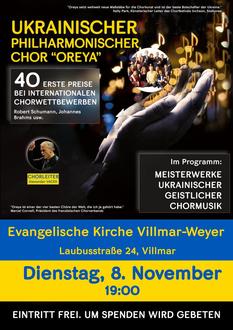 Am Dienstag, dem 8. November, wird der Chor "Oreya" aus der Ukraine in unserer Weyrer Kirche am Abend ein Konzert geben.