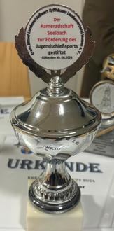 Die Kyffhäuser Kameradschaft Seelbach wurde vom Landesschießwart Erwin Bittorf mit einem Ehrenpokal zur Förderung der Jugendarbeit geehrt. In einer schweren Zeit für Jugendarbeit in Vereinen, haben es die Kyffhäuser aus Seelbach geschafft, innerhalb von 2 Jahren 12 Kinder und Jugendliche für den Schießsport zu gewinnen. Neben Kreis und Landeswettkämpfen, hat es die junge Gruppe unter der Leitung von Sarah Herrmann, Patrick Maiwald und Marc Knoth als Jugendschießwart bis zum Bundeswettkampf geschafft. Ein ganz besonderes Dankeschön gilt natürlich unseren Jugendlichen, die mit vollem Elan und Ehrgeiz dabei sind. Wir möchten uns aber auch bei den Eltern und unserem Vorstand bedanken, ohne deren Hilfe und Unterstützung die Jugendarbeit nicht machbar wäre.